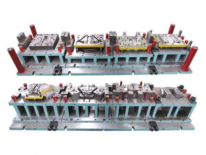 目前,國(guó)內(nèi)汽車(chē)零件高強(qiáng)度鋼板的應(yīng)用還多限于結(jié)構(gòu)件與梁類(lèi)件,所用材料的抗拉強(qiáng)度多在500MPa以下。因此,迅速掌握高強(qiáng)度鋼板沖壓技術(shù),是我國(guó)汽車(chē)模具行業(yè)亟待解決的一個(gè)重要問(wèn)題。 新型模具產(chǎn)品適時(shí)推出 隨著汽車(chē)沖壓生產(chǎn)高效化和自動(dòng)化的發(fā)展,級(jí)進(jìn)